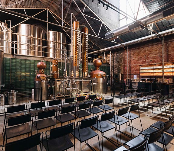 Host a cocktail party, wedding, seminar or conference in one of our unique function spaces in the Distillery.